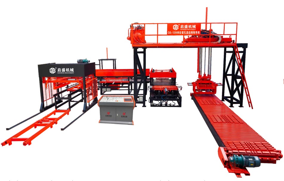 QS-1200B型自留孔高位碼垛系統(tǒng)是公司為了適應(yīng)市場多元化發(fā)展需要潛心研發(fā)的擁有獨立自主知識產(chǎn)權(quán)的專利產(chǎn)品.生產(chǎn)線適用于簡易型砌塊生產(chǎn)線的干產(chǎn)品碼垛,屬于半自動碼跺生產(chǎn)線,一般情況下獨立設(shè)置于產(chǎn)品養(yǎng)護(hù)堆場附近,對于養(yǎng)護(hù)好的制品就地碼垛,亦可串聯(lián)于砌塊生產(chǎn)線之中,實施在線碼垛。